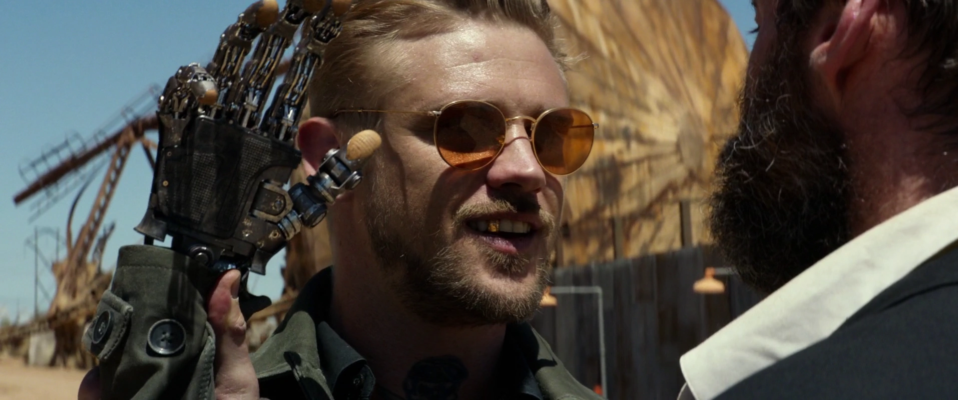 Donald Pierce fixing his prostetic arm.