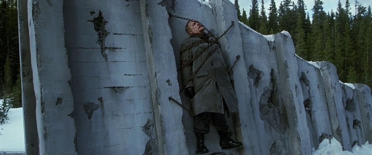 Outside, Stryker takes the cables keeping the helicopter on the ground off, but just then Wolverine shows up, punches him and pops his claws in his arm. Logan yells at him for experimenting on him and stealing his life, but Stryker tells him that he volunteered for the procedure willingly. Wanting answers, Logan asks Stryker who he is, but Stryker tells him that he's nothing but a failed experiment, provoking Logan into digging his claws deeper into Stryker's arm. Stryker doesn't want the mutant to remember the work they did together – he was an animal then, he's an animal now, Stryker just gave him claws. Suddenly, they hear an alarm going off then water burst out of the dam. Logan asks Stryker what's happening, and Stryker tells him that the spillway is about to get flooded because he was trying to relieve the pressure. In an attempt to escape alive, Stryker says that it's too late for anyone who's inside to make it out and offers him to come with him and get all the answers he wants – he's a survivor, always has been. Wolverine repeats Stryker's former words, saying he's just an animal with claws – if they die, he dies. He then pops his claws in Stryker's neck and ties him to the helicopter's leg with the cable before running back in.